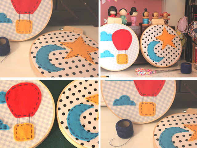 Só faltavam os quadrinhos-bastidor para completar o projetinho do quarto do bebê Miguel! Viva! Agora sim está tudo pronto. Esses vou levar comigo assim que tiver um tempinho para visitá-lo em sua casa. Feltrices de dia e feltrices de noite para combinar com sua porta, seus móbiles de cortina e suas brincadeiras! =) Espero que gostem! Boa sexta para todas!