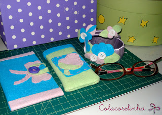 Pulseiras e bracelete de cetim com apliques em feltro e bolsinhas para celular e maquiagem. Tudo novinho em folha! A costurinha e o cola ainda não são super íntimos, mas já estão se dando muito melhor!
