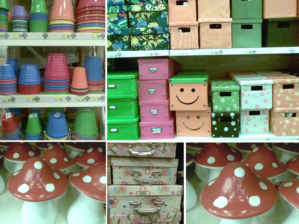 Ontem de manhã rolou visitinha focada na Leroy. Focada? É… Daquele tipo: Marcela, olha pra frente e lembre-se dos motivos e necessidades! Rs. Quantas boas surpresas e perdições em seus corredores! Ai, ai. O que a gente precisava para organizar e decorar o estúdio: molduras, uma nova estante, uma caixa bonitona. Tá. O que a gente nem sonhava precisar: muda dinheiro em penca, baldinho vermelho, um cogumelo (!), quadro negro! :)