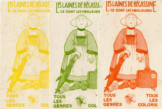 Uma babá com roupinhas camponesas, com um grande guarda-chuva e uma carinha muito simpática, para mim, com jeitinho de avó carinhosa. Personagem de livros e quadrinhos bastante popular na França desde 1902, hoje aplicada em todos os tipos de souvenirs, a Bácassine é uma das minhas favoritas. Sempre que a vejo dou um sorriso, acho muito delicados seu desenho e suas cores. Até tenho um calendário de não sei qual ano pendurado sobre minha cama, não me dá coragem de tirar. Pra quem quiser conhecê-la melhor e ver seus livros e bonecas, encontrei este site de uma grande amante.