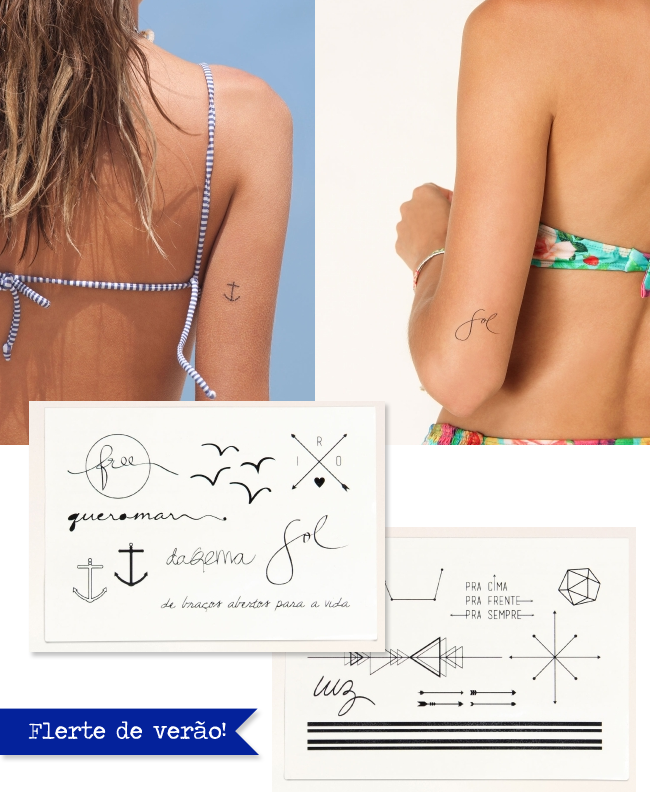 Para aquelas que sofrem do mesmo mal, compartilho uma novidade que acabo de ver na loja online da Farm: tattoos temporárias, com desenhos descolados e bem atuais que podem ser ótimos test drives por um verão!