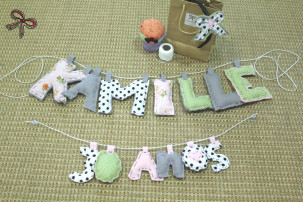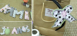 Com bolo, flores e letras fofas, o aniversário da Kamille! Uma moça criativa, que ao ver o varal do Miguel, logo quis encomendar dois especiais para a sua festinha! As cores? “Ma, quero bem retrô! Você escolhe!” Dei pulinhos com a sua ideia e fiz com o maior carinho! Afinal… Não é demais poder criar a decoração de uma data tão importante? Muito muito bacana! Passei noite e meia fazendo o alfabeto do cola e um casquetinho para a aniversariante!